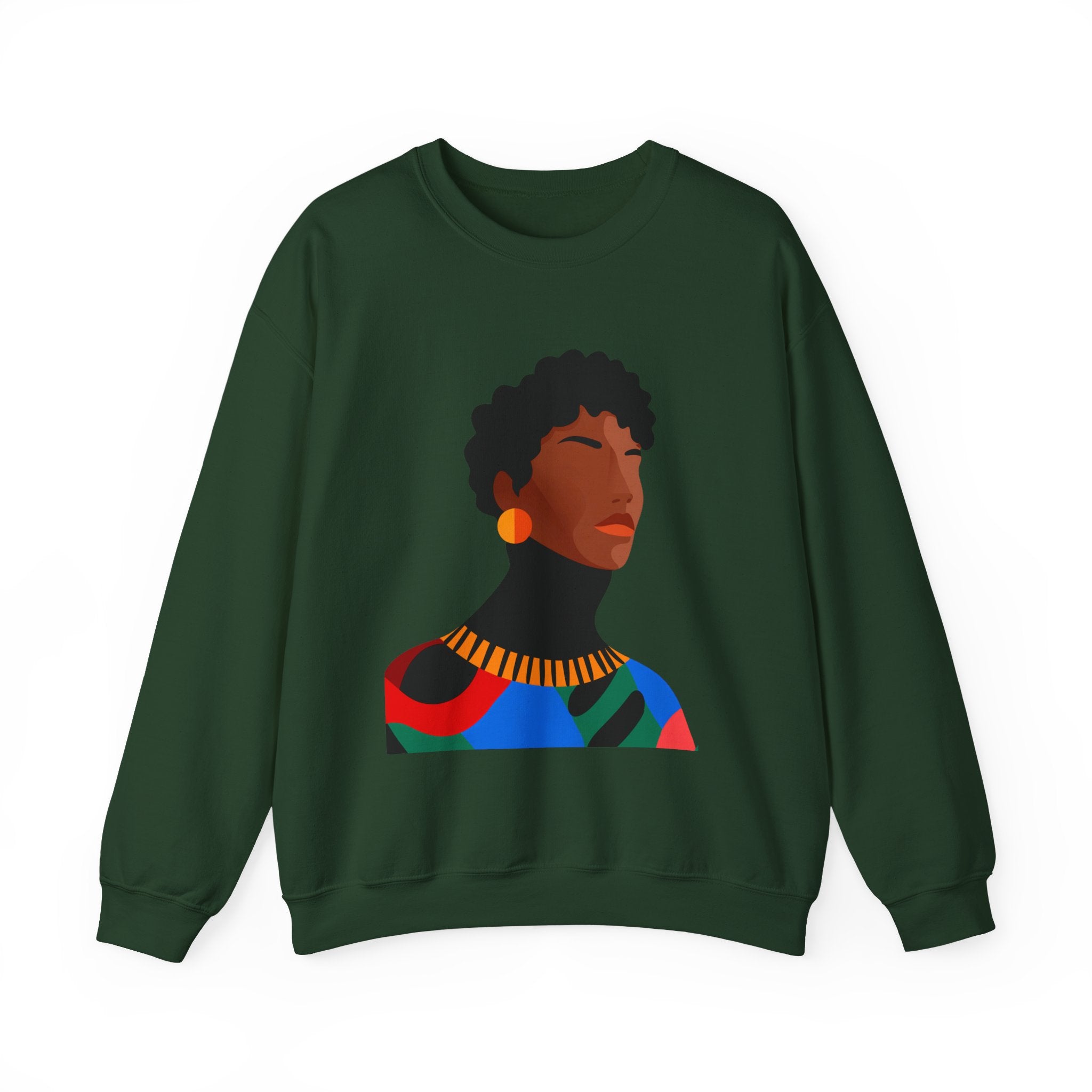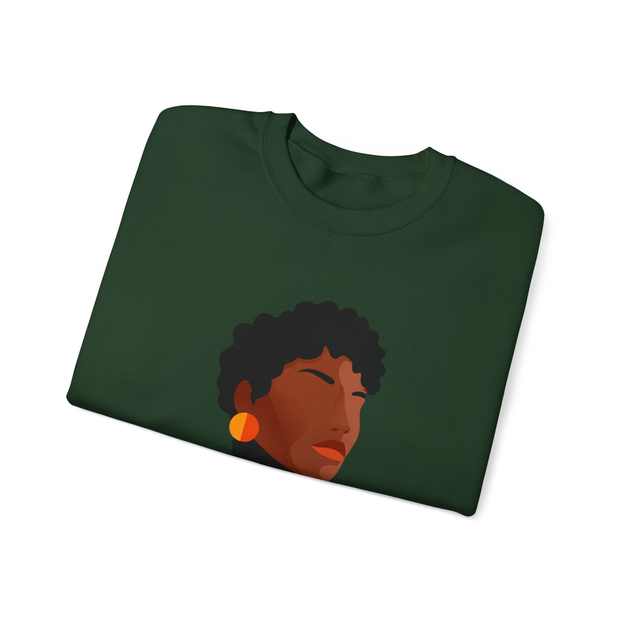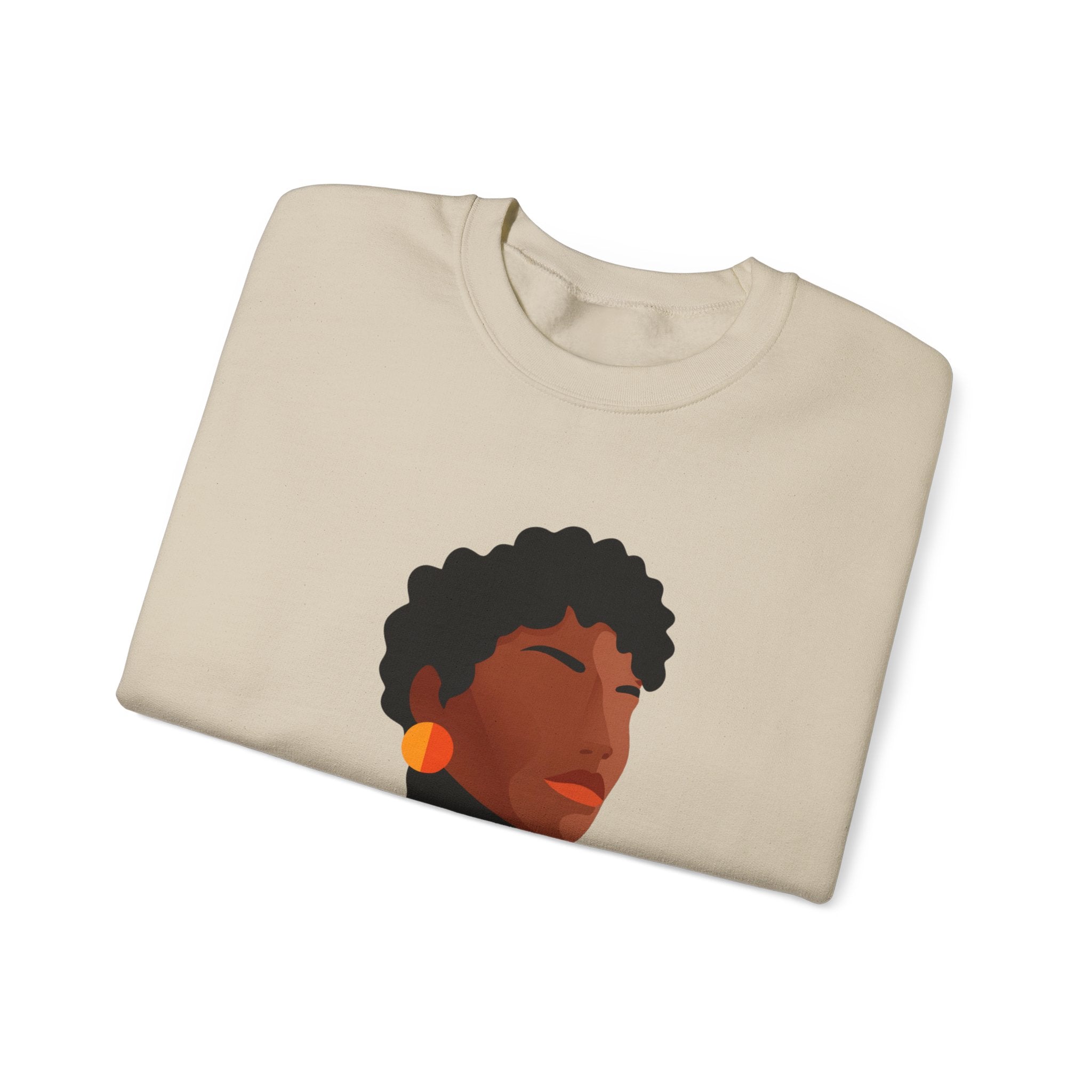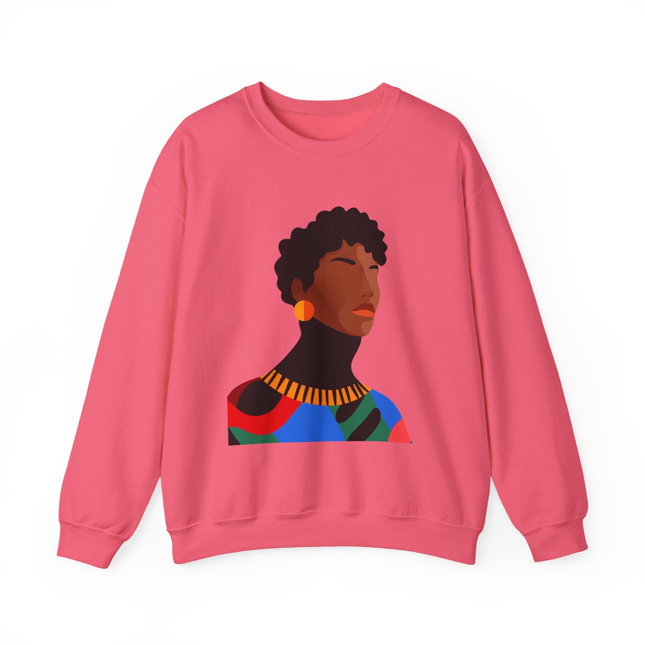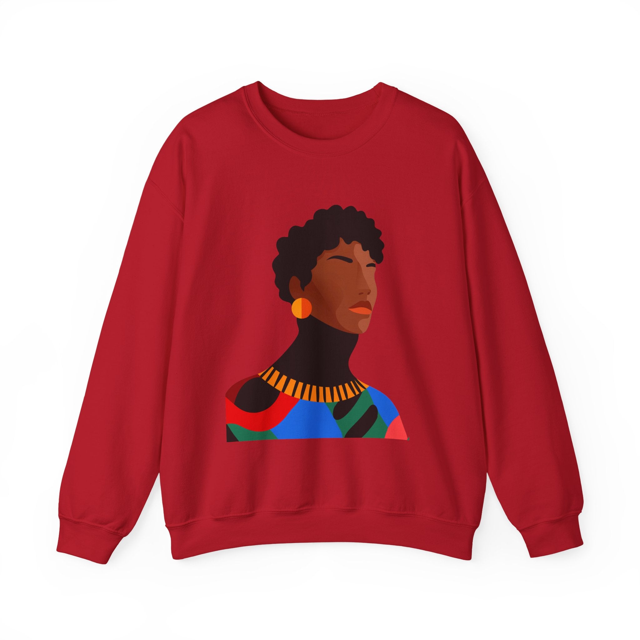 This cozy crewneck brings quiet confidence and bold color to your everyday wardrobe. Soft, medium-heavy fabric cradles the body while a striking portrait print adds an artful, contemporary edge. Wear it on cool mornings with jeans or layered over a tee for nights when you want comfort without giving up personality. The clean neckline and durable double-needle stitching mean this sweatshirt will age gracefully, becoming a go-to piece for relaxed weekends, gallery strolls, or low-key gatherings. The portrait’s warm tones and geometric accents pair effortlessly with neutral staples or brighter layers, making it feel both personal and expressive.