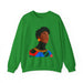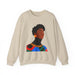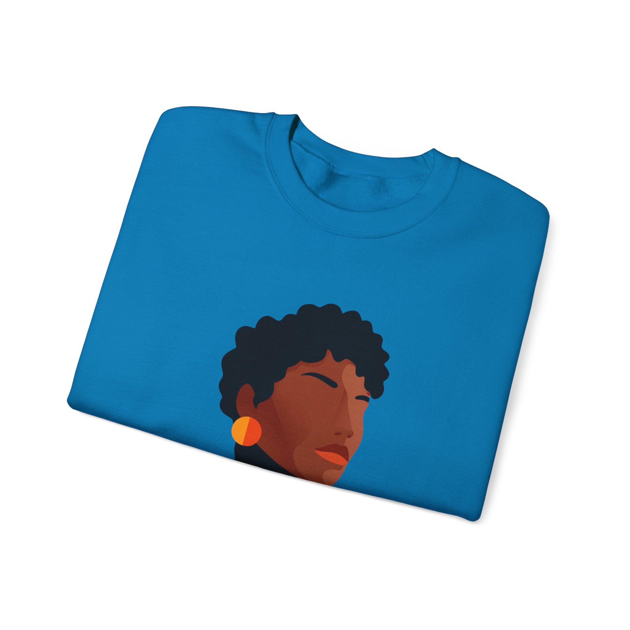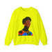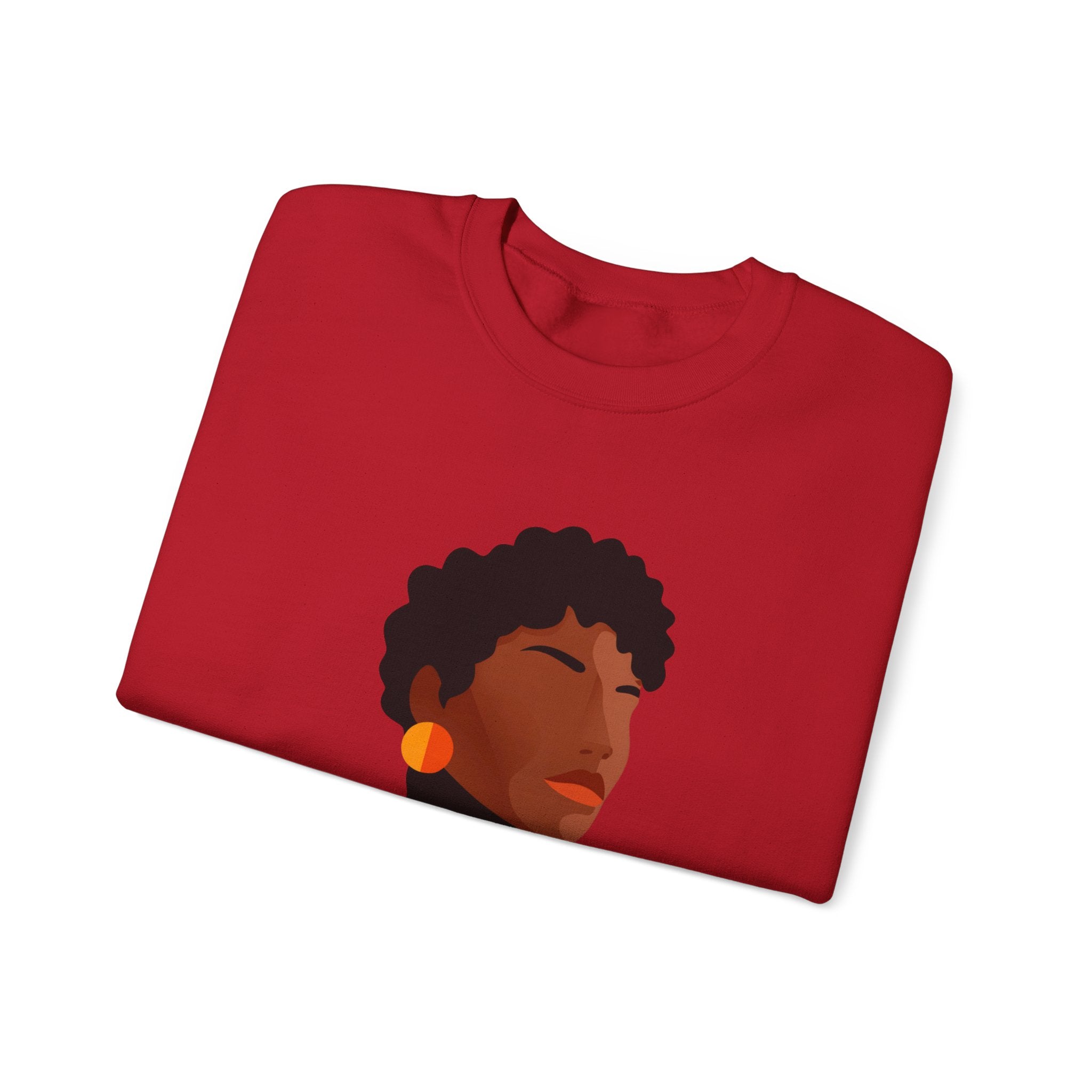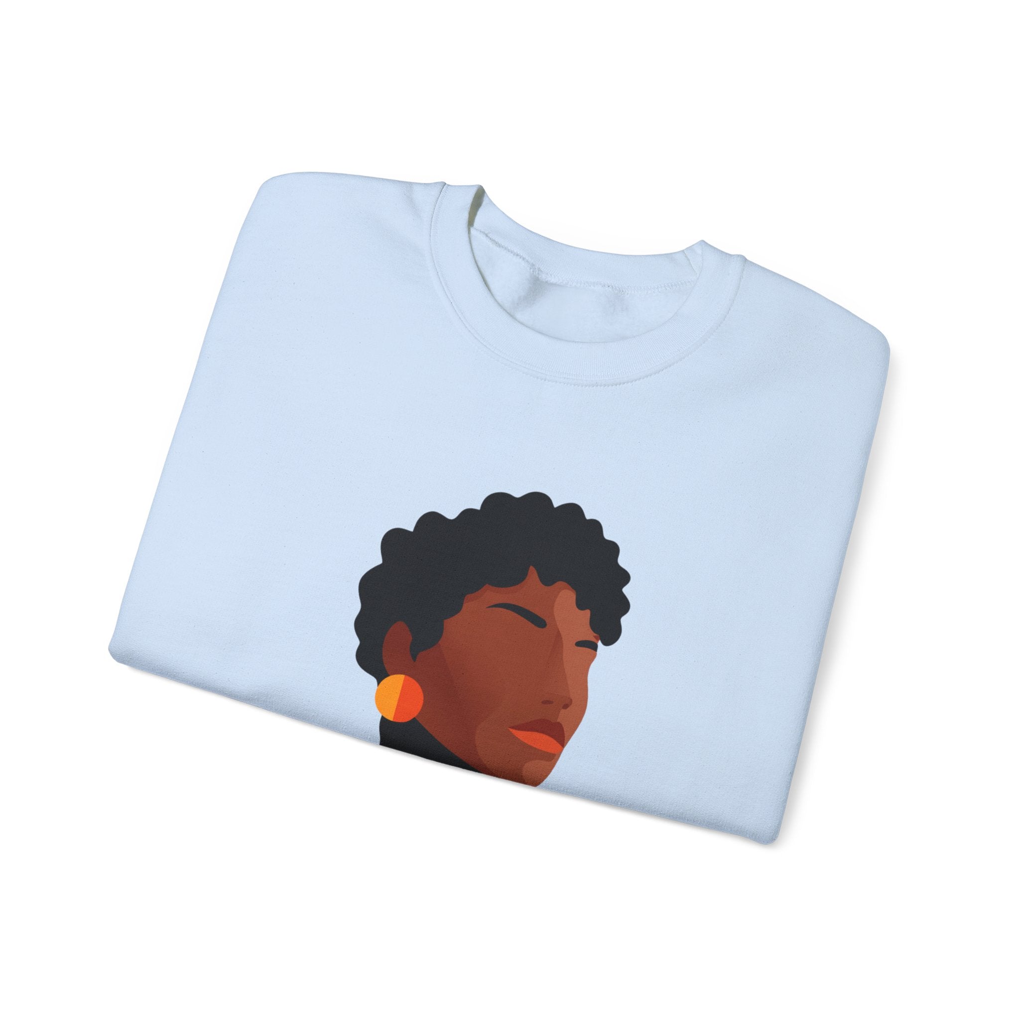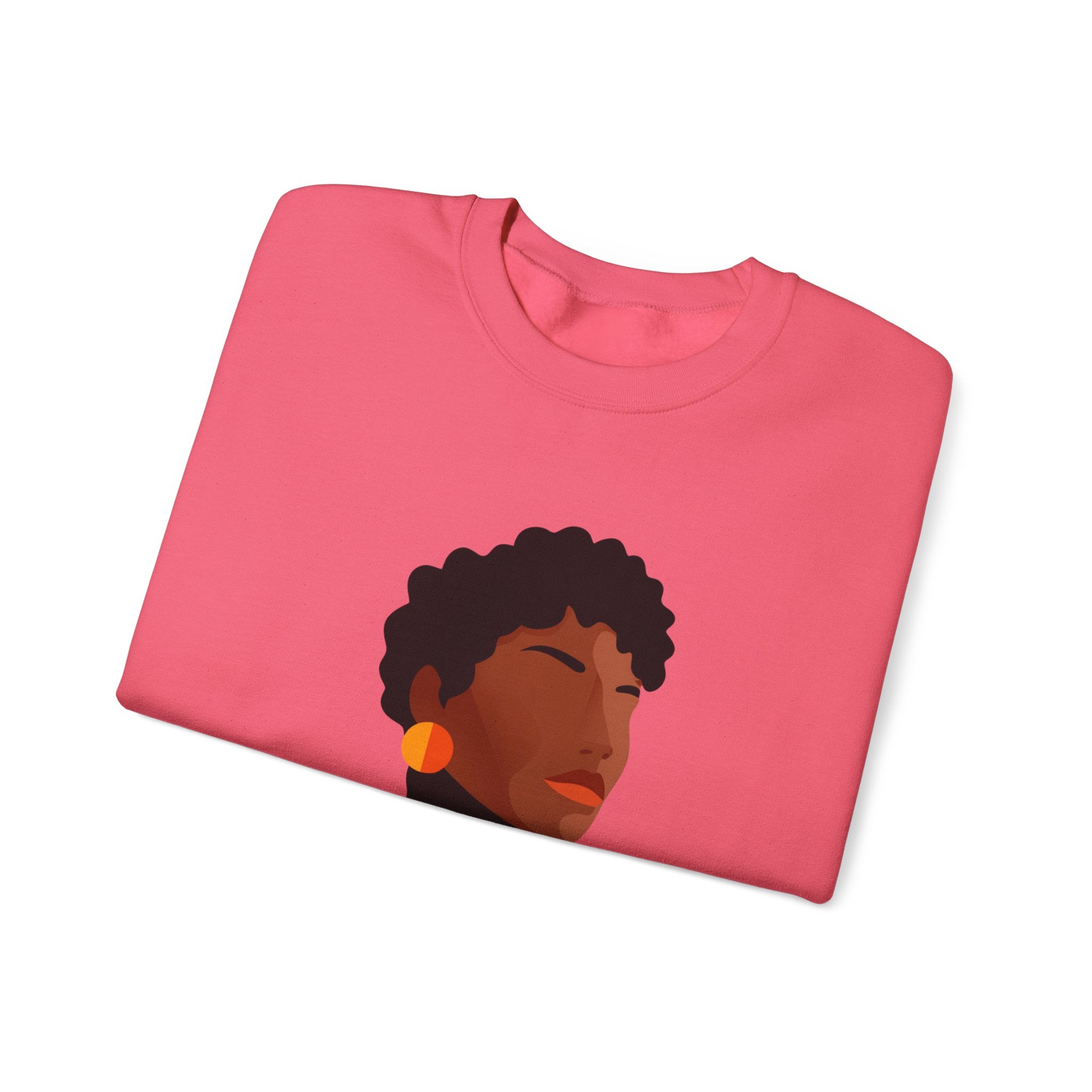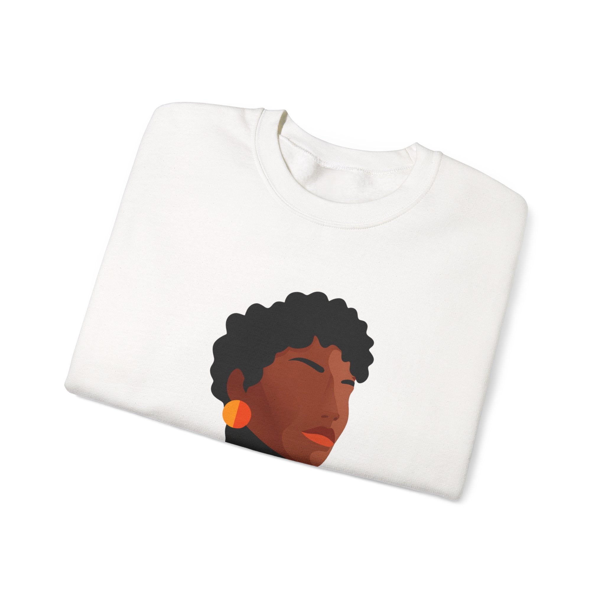 This cozy crewneck brings quiet confidence and bold color to your everyday wardrobe. Soft, medium-heavy fabric cradles the body while a striking portrait print adds an artful, contemporary edge. Wear it on cool mornings with jeans or layered over a tee for nights when you want comfort without giving up personality. The clean neckline and durable double-needle stitching mean this sweatshirt will age gracefully, becoming a go-to piece for relaxed weekends, gallery strolls, or low-key gatherings. The portrait’s warm tones and geometric accents pair effortlessly with neutral staples or brighter layers, making it feel both personal and expressive.